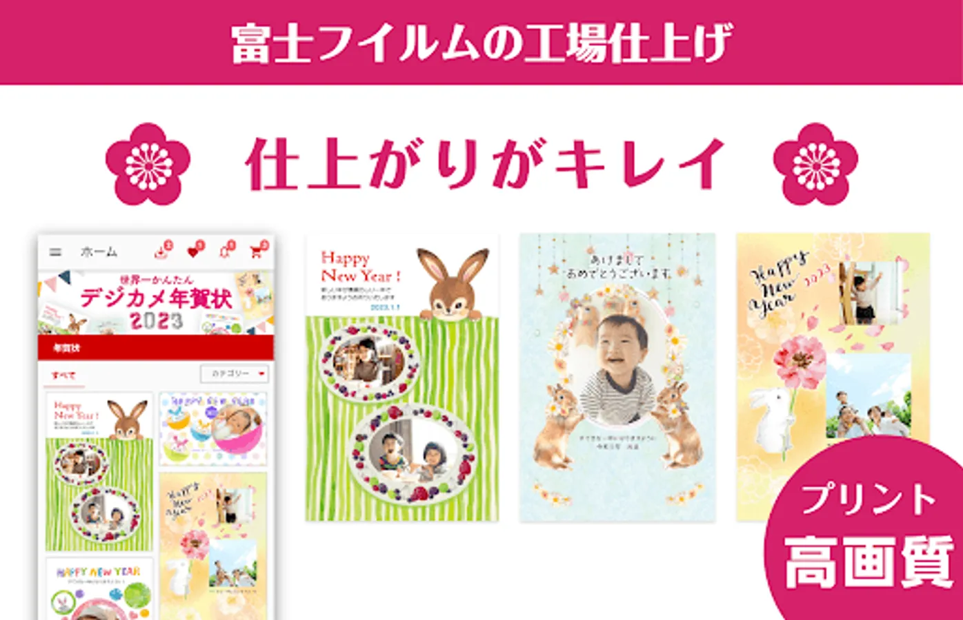 Fujifilm's ultra-high-definition Fuji color photo paper makes photo New Year's cards look beautiful.