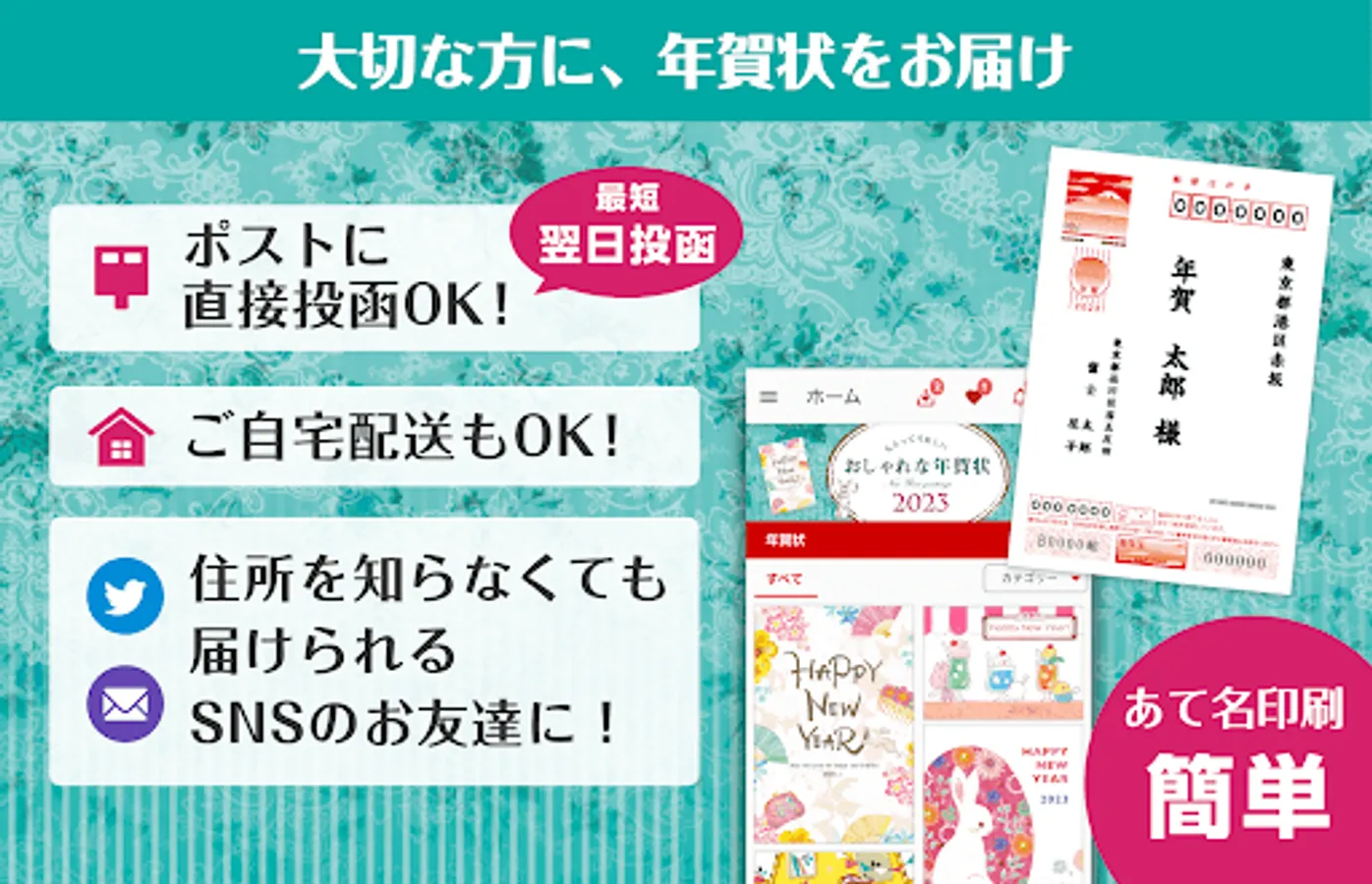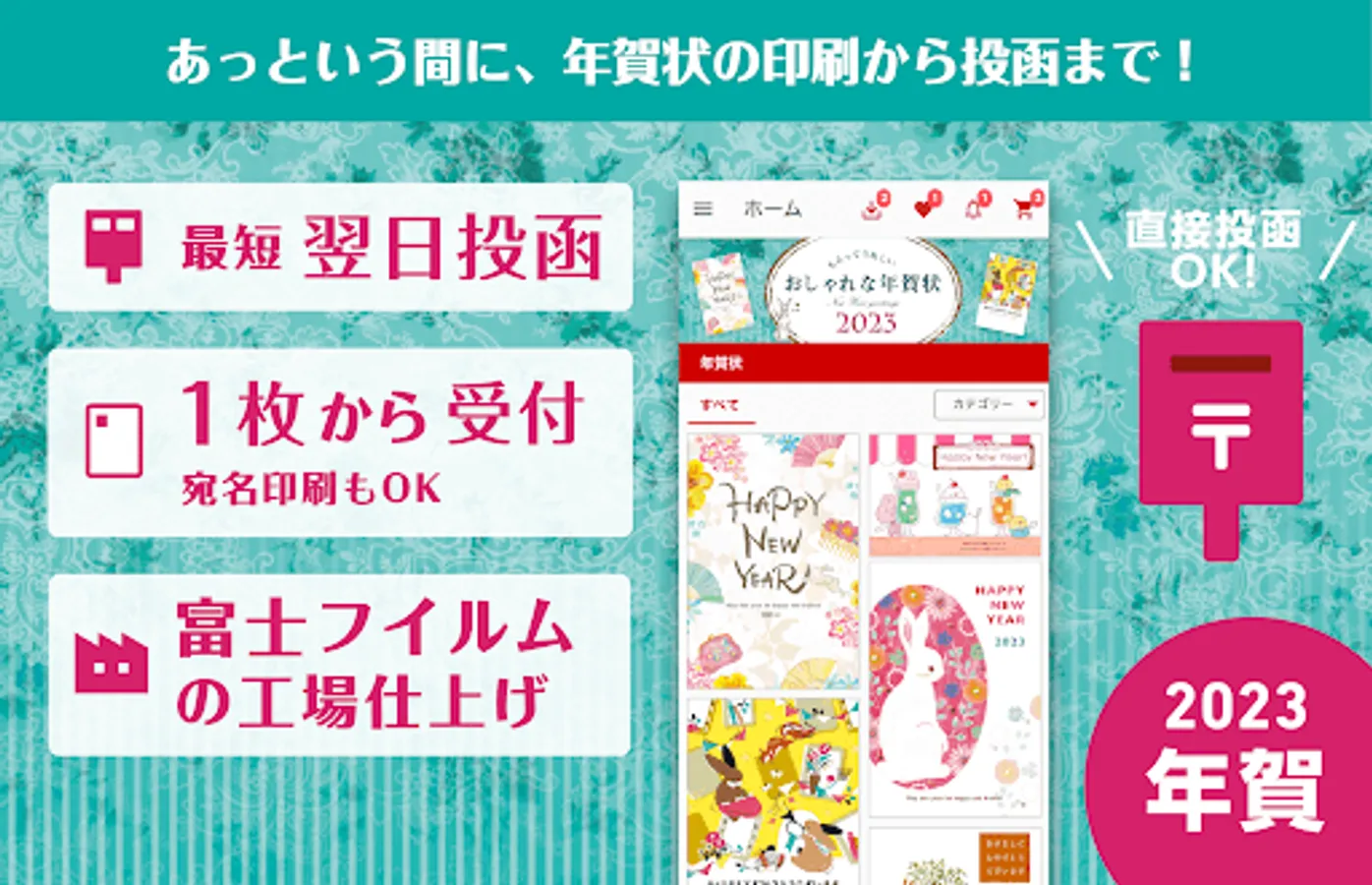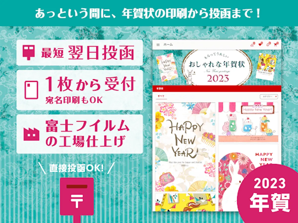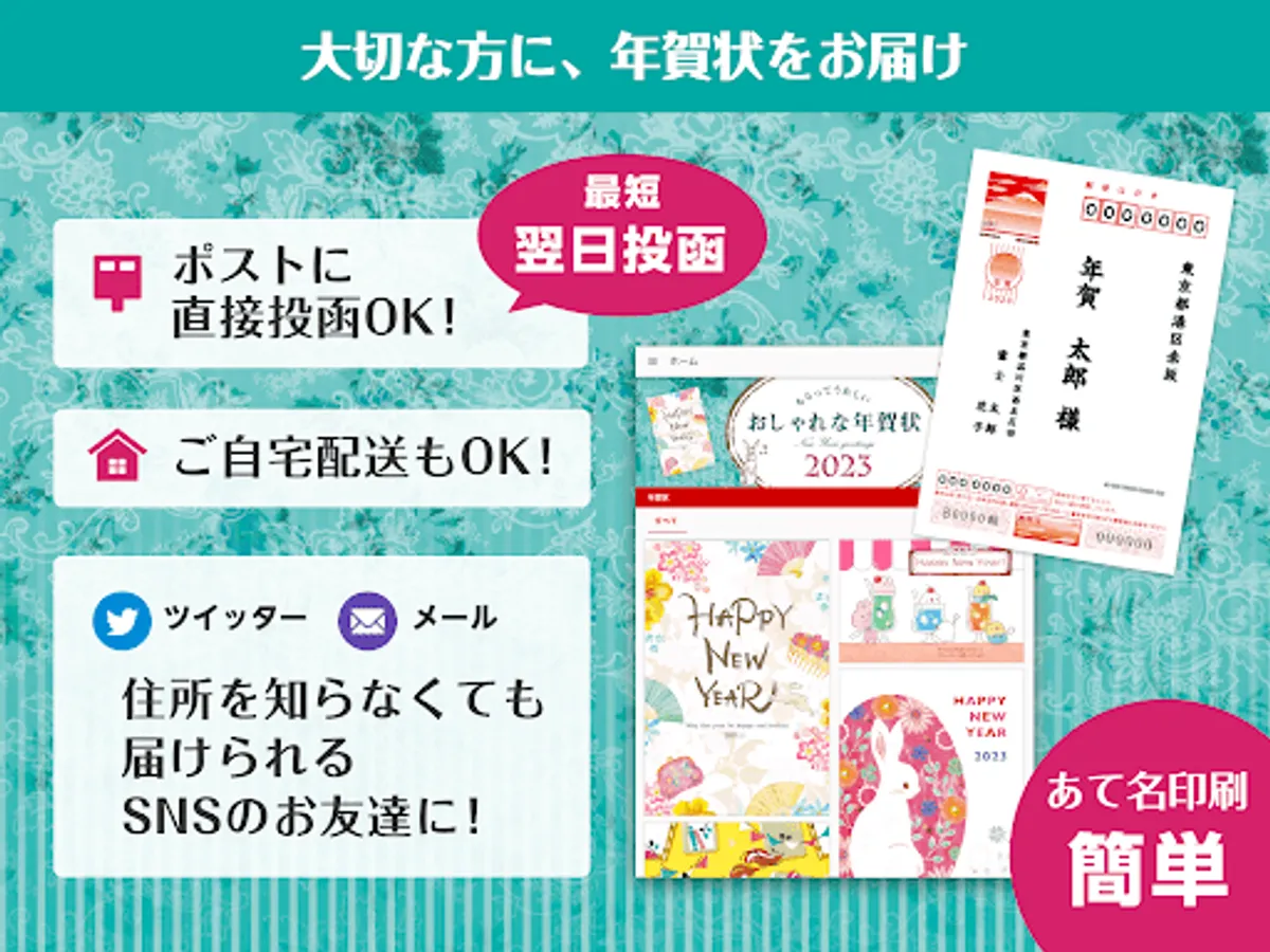"Complete on your smartphone, make this year's New Year's card" The definitive New Year's card smartphone app that allows you to create, print, and mail New Year's cards!