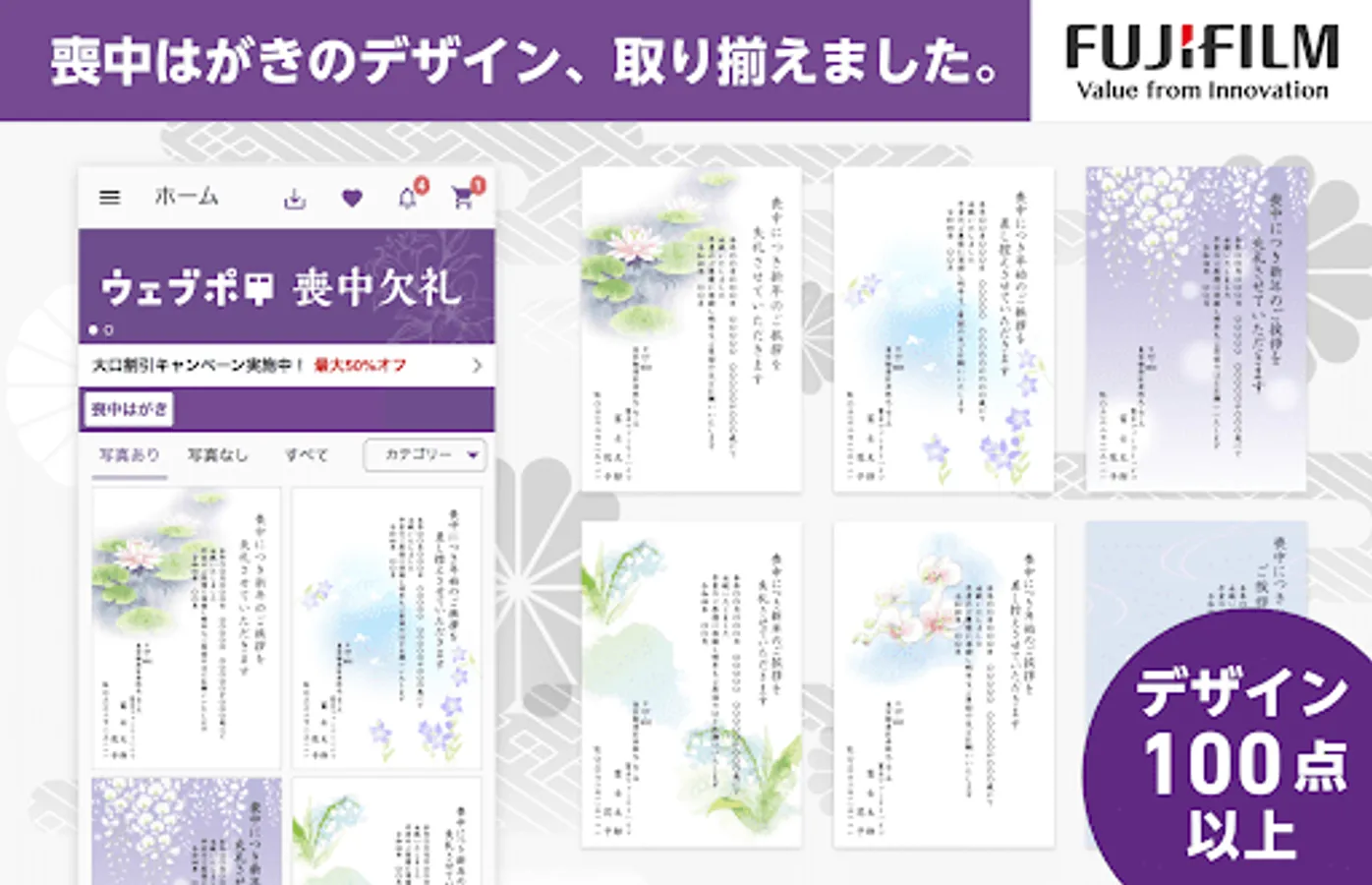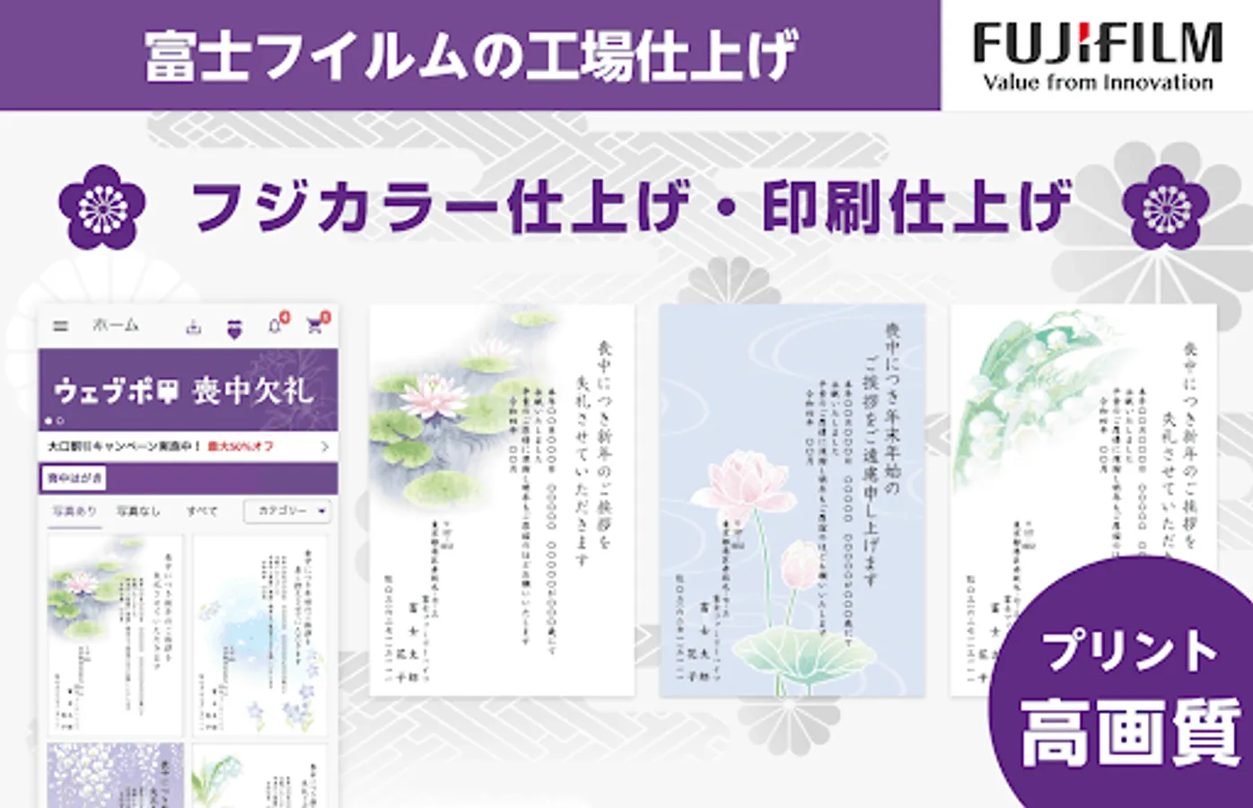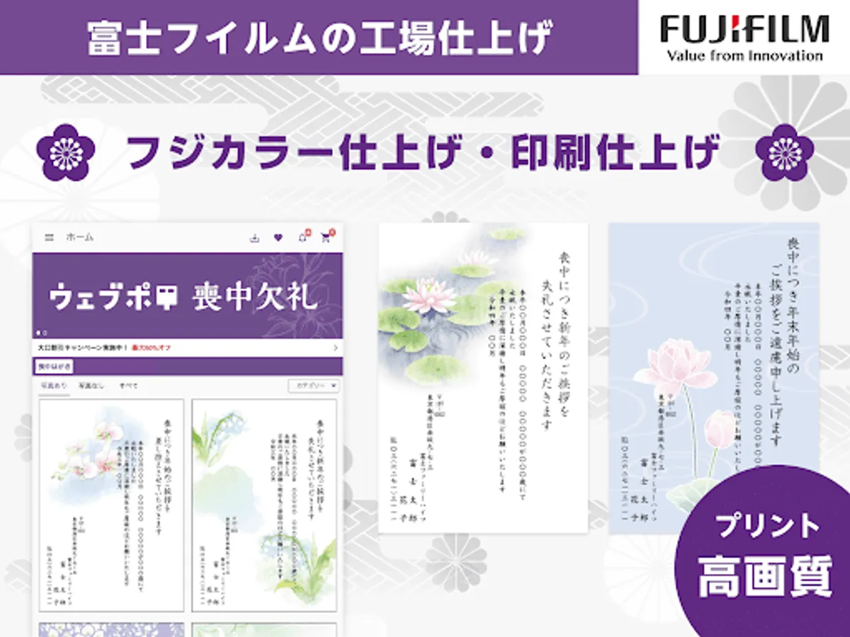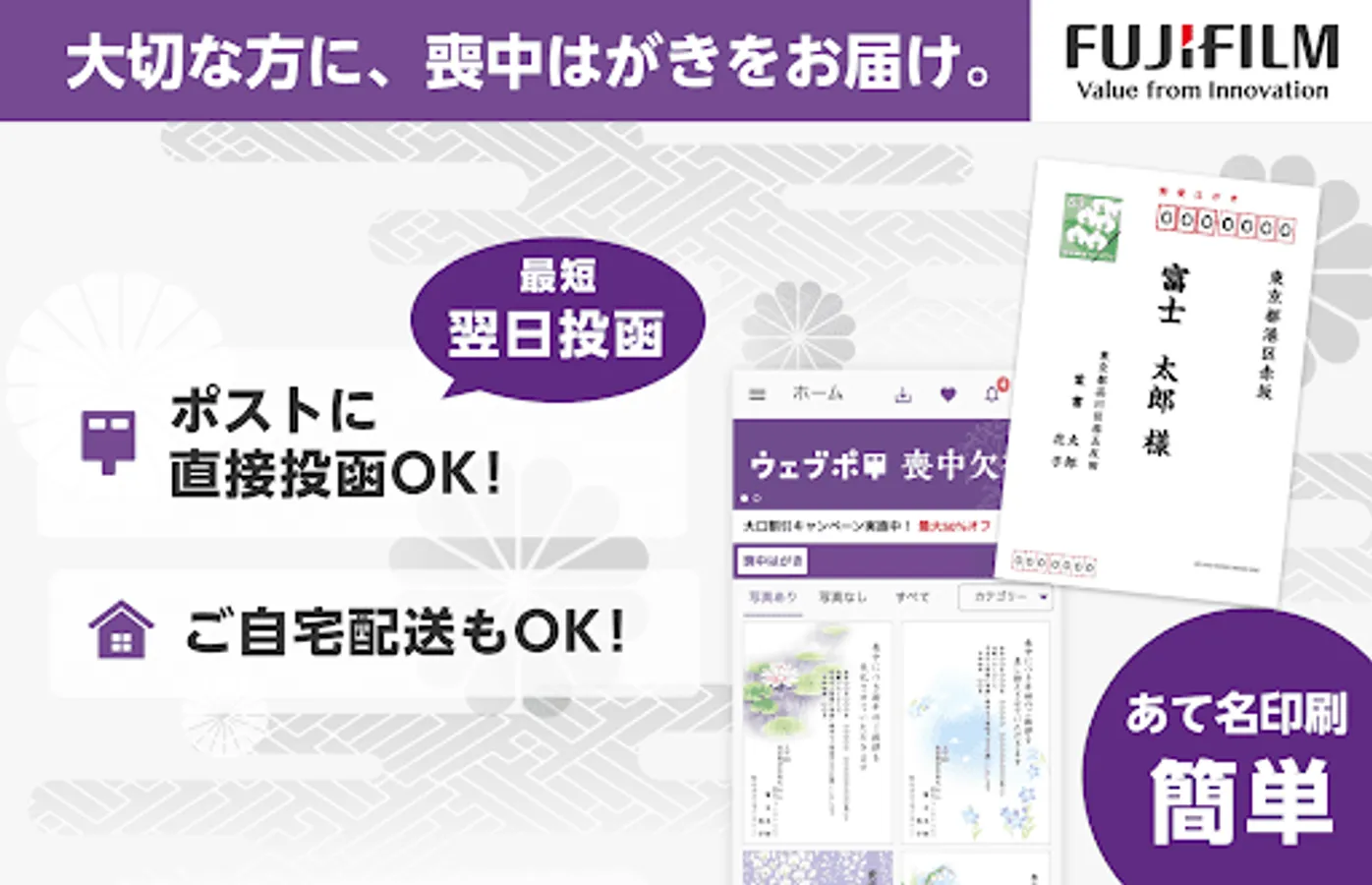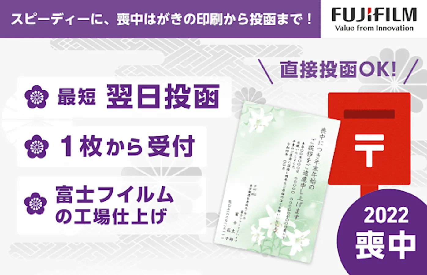 Fujifilm's ultra-high-definition Fuji color photo paper makes photo mourning postcards beautiful.
