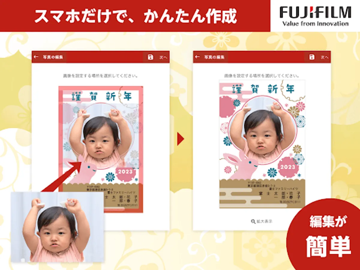 For New Year's cards, leave everything from design editing to address printing and even mailing on your smartphone. Our speedy delivery and speedy mailing as soon as the next business day are also popular.