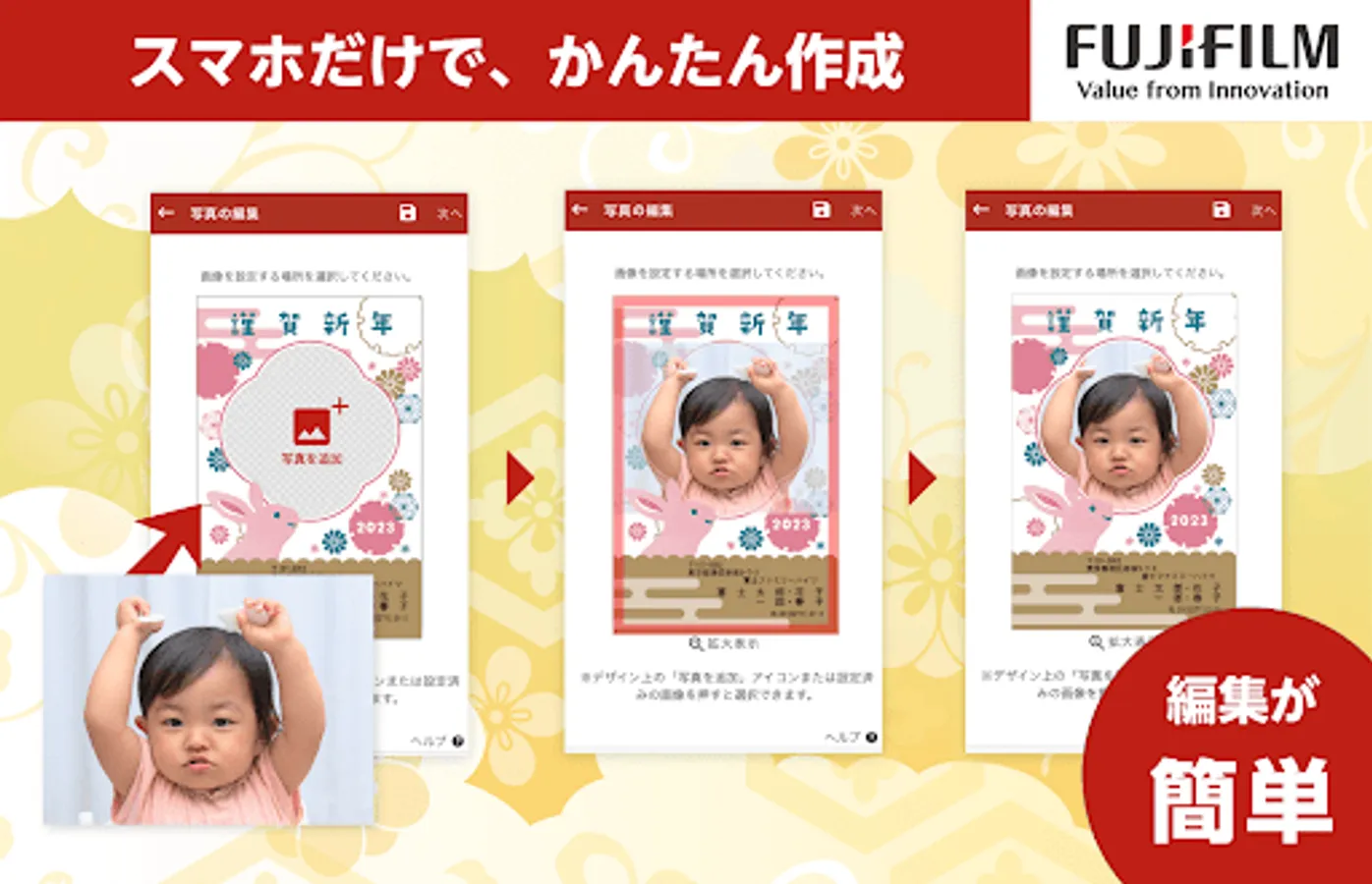 Fujifilm's ultra-high-definition Fuji color photo paper makes photo New Year's cards look beautiful.