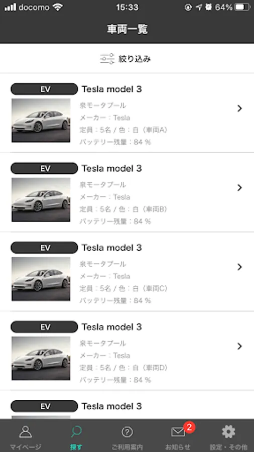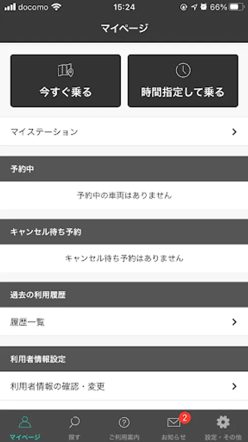 2. Select a station and car from the "My Page" or "Search" page