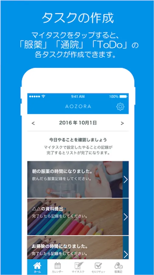 On the day of your visit, the task list for that day will show you the task of checking if you have the medical examination ticket, health insurance card, wallet, mobile phone, etc. that you need when you go to the hospital or clinic. Please use it to prevent things left behind.