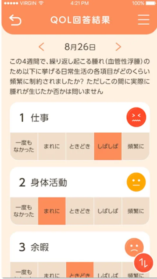 In addition, QOL (*) allows you to easily record the effects of seizures in your life by simply answering them in the app.