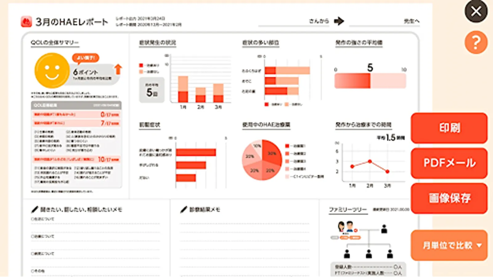 When using "HAE Note", if you register as a member, data will be saved in the cloud, and you will be able to use the report creation function and medicine registration function.