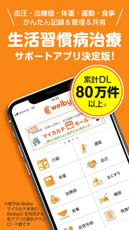 "Welby My Carte" is a free app that allows you to easily record measured values such as blood pressure, blood sugar level, and weight, as well as daily diet, exercise, and sleep. By setting the linkage with the specified blood pressure monitor, self-monitoring blood glucose meter (SMBG), weight scale, activity meter, etc., the data at the time of measurement can be automatically recorded in the app. The collected data can be shared with doctors and family members and can be used for health management, lifestyle improvement and treatment.