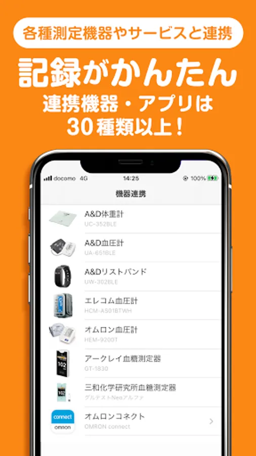 It is linked with the applications of each company such as sphygmomanometer, self-blood glucose meter, weight scale, body composition meter, activity meter, sleep meter, etc. You can record such things with the app, look back and share the recorded data.