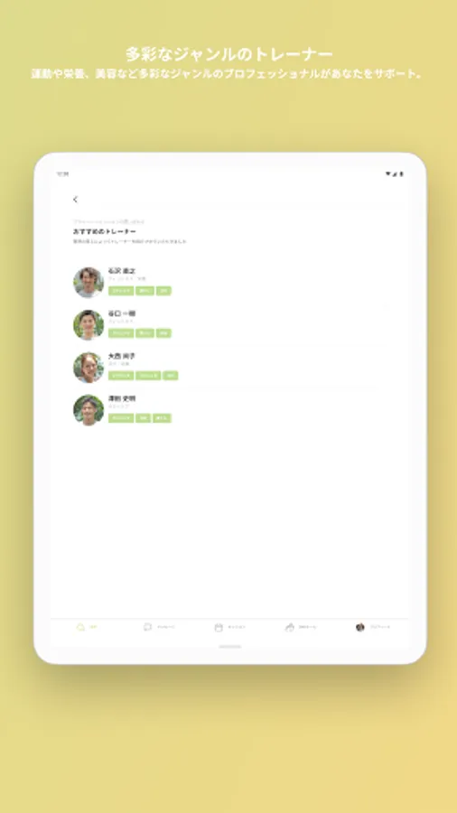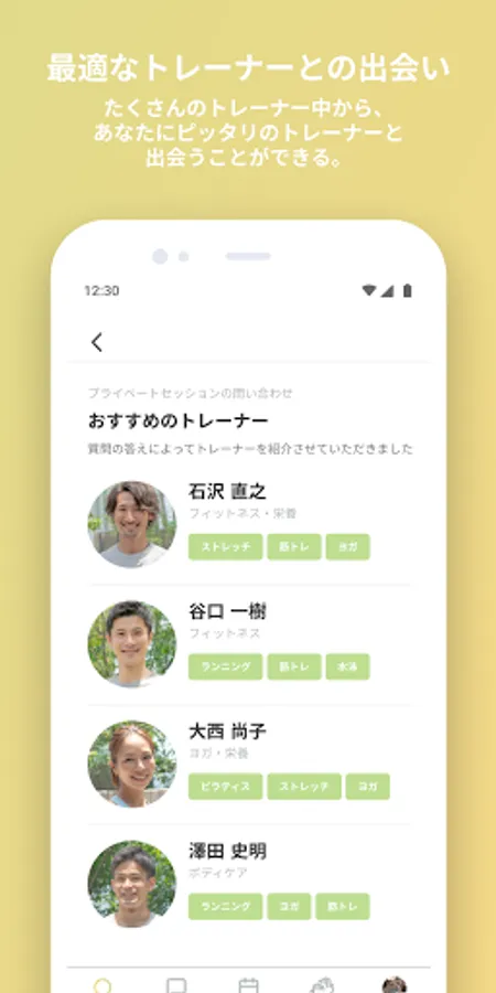 With the matching function, you can meet the most suitable trainer for you from among trainers of various genres.