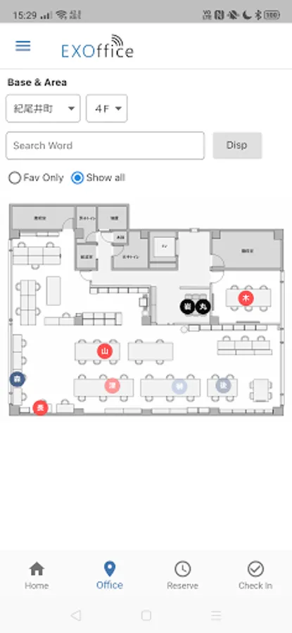 - Attendance management displays the current seating location of the worker on the indoor map. It is possible to locate the worker and display the only selected members that are registered in advance.
