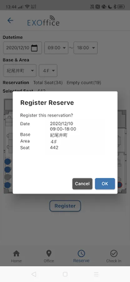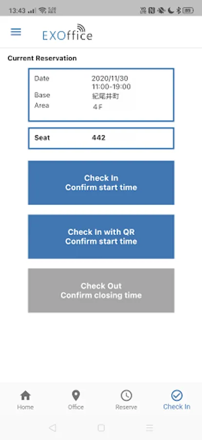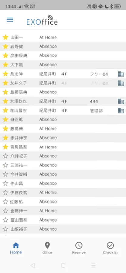 EXOffice is an application to provide various services for the office workers to cope with new normal of the office life. Using beacon tag or smartphone, it measures the location of the office worker and provides services such as attendance management, hoteling, telework support and office diagnosis.