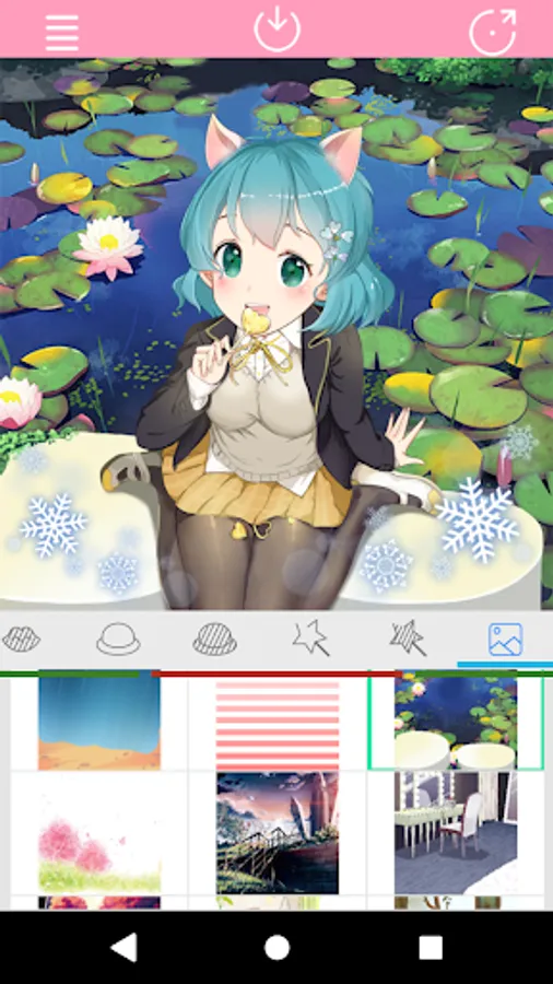 This app let you freely create anime girl image of variety of styles. you can choose your favorite eyes, eyebrow, skin color, hair style to create your lovely model. In addition, there are a great variety of accessories,shirts,blouses,skirts,gowns,overcoat to choose from. Start to design your lovely animated girl image with your unlimited imagination.