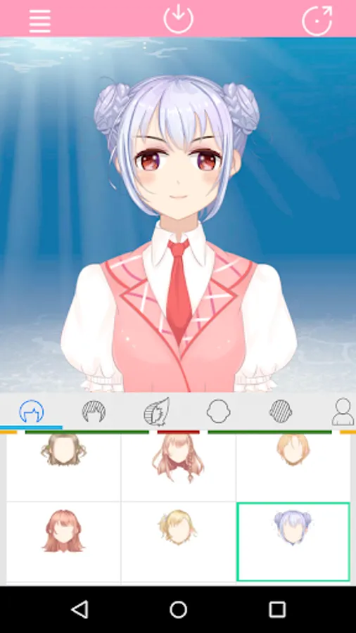 You can change the look of your hair, your facial hair, eye color,eyebrows, even the clothes that show up when you send your anime avatar to someone.Once you've selected a anime that you like, you can send it via Whatsapp,Facebook Messenger, or any other messenger you choose.