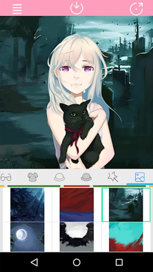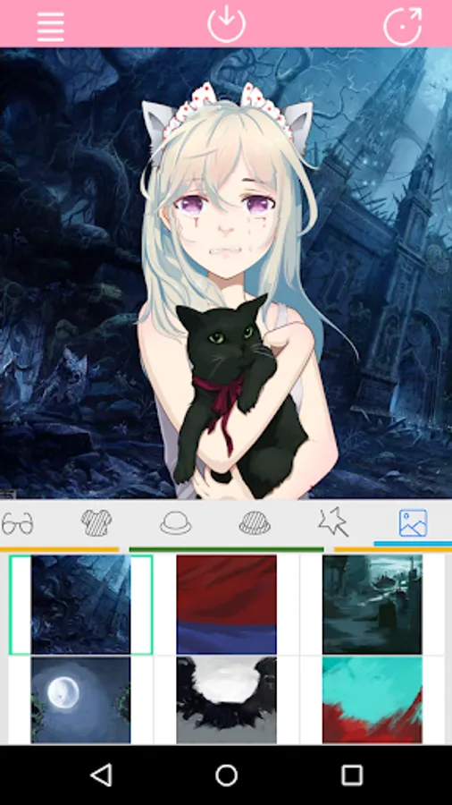 With this application, you can design the ghoul anime avatar at your wish. Without the rich collection of the eyes, has the desired color, hairstyles eyebrows, mouth, beautiful clothes and background. Right under your fingers, you can create your favorite role freely.
