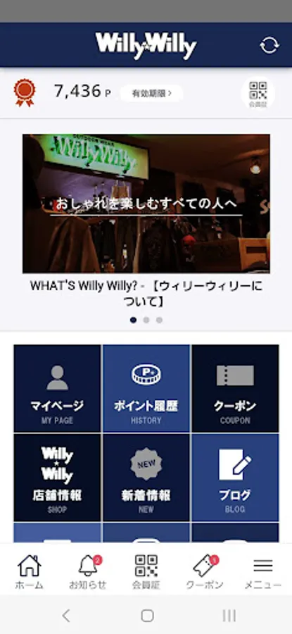 You can open it by tapping the "Membership card" area at the top of the "Home" screen, or by pressing the "Membership card" button at the bottom.