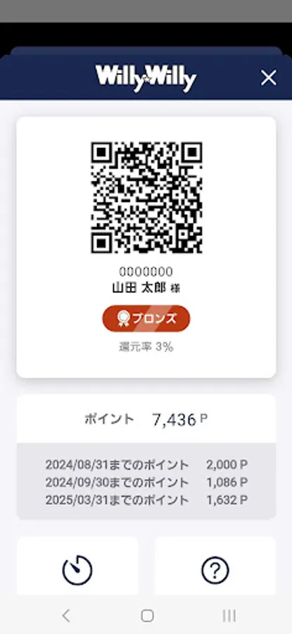 If you have not registered as a member yet, please register as a member using the QR code on the temporary card, and then log in using the same procedure as for "registered customers" above. Points will be carried over.