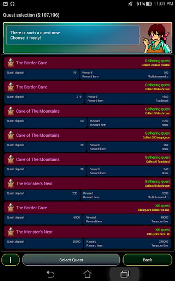 But, by exploring the dungeon in "Free Quest" several times, you can save money and get equipment little by little.
