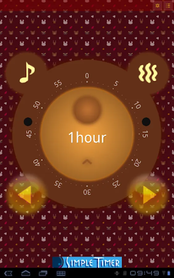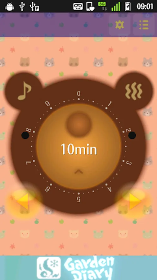 To turn on/off the melody performance and the vibration notification when the timer is completed, tap bear's ear.
