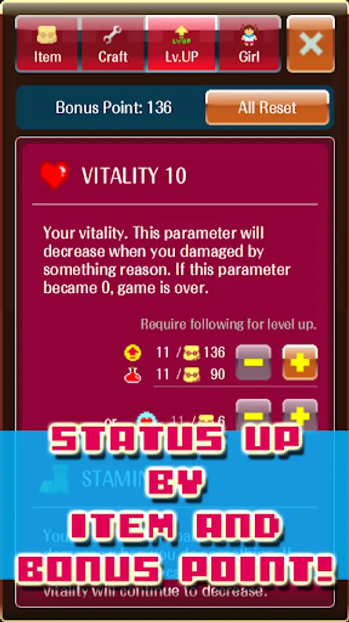 - Challenging monsters without leveling up is dangerous. I recommend to level up 'Attack' right away.