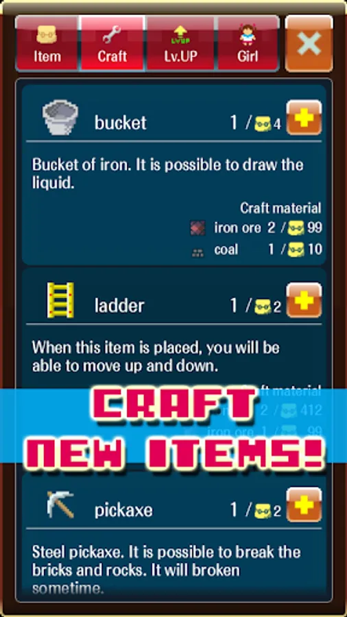 - If you find a new item, please check the Craft screen. You may be able to create new items.