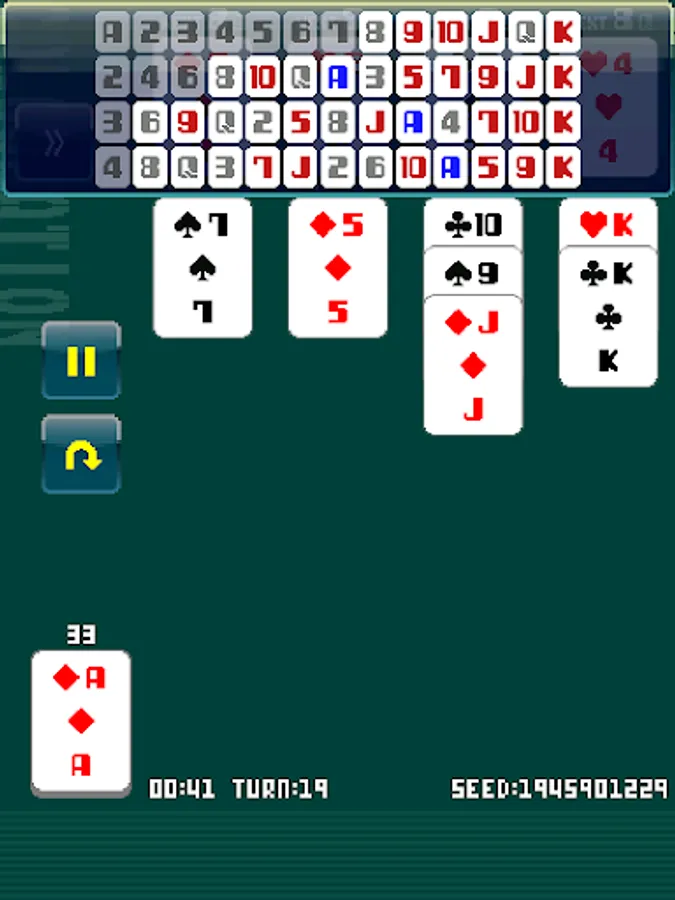 At first, the card of "A,2,3,4" will be dealt to foundation.