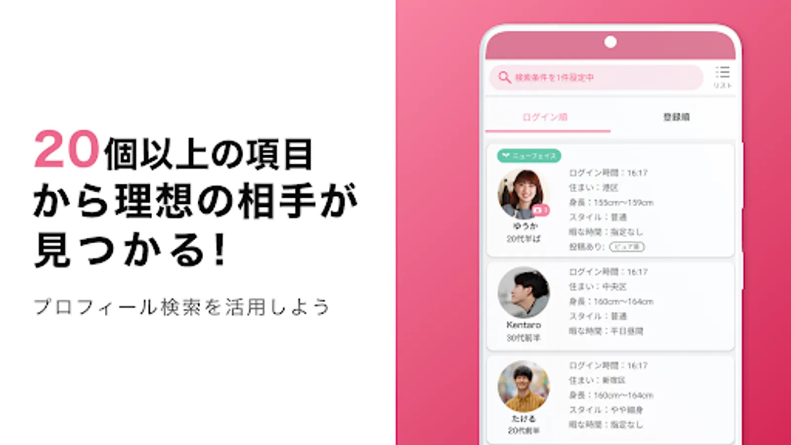 ・ Profile search: You can search for your partner under various conditions, such as region and age.