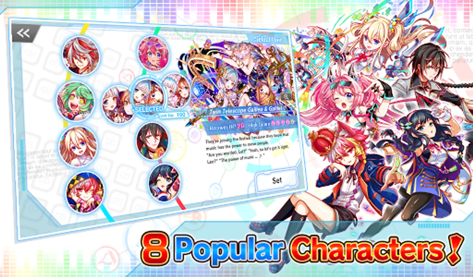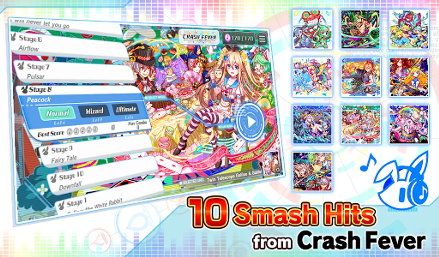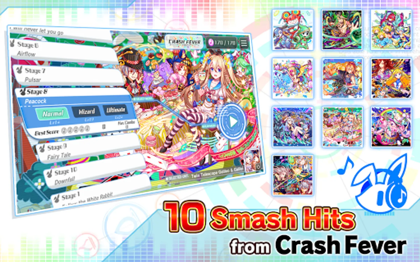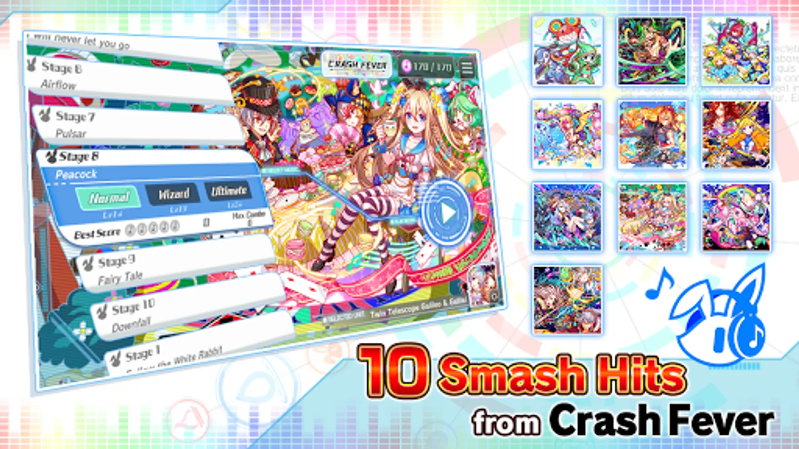 This game is a music celebration featuring music, characters and more from the worldwide puzzle RPG phenomenon Crash Fever. Worldwide Crash Fever has surpassed over 10 million downloads and recently reached its 4-year milestone.