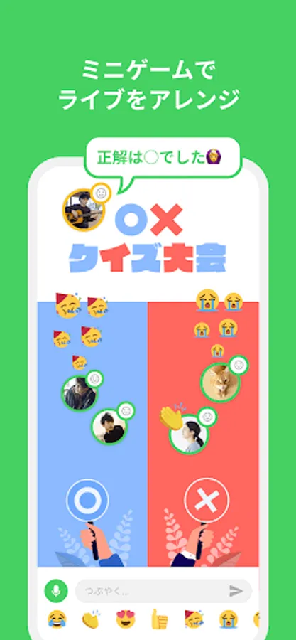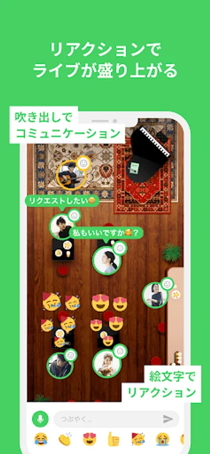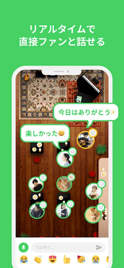 ルームに入るだけでライブに参加でき、ライブをただ聞くだけではなく、直接アーティストと話したり、ミニゲームも行えます!