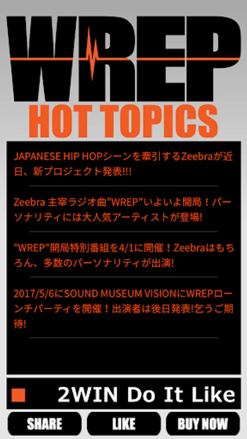 The long-standing dream of the leader of the Japanese HIP HOP world, "Zeebra", the HIP HOP specialty radio station, "WREP" has opened!