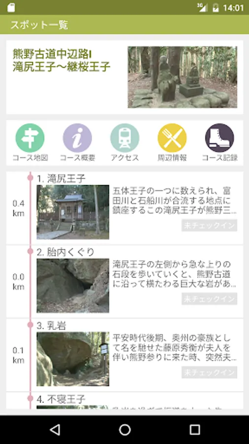 2. コースやチェックポイントの詳細情報を見ることができます。