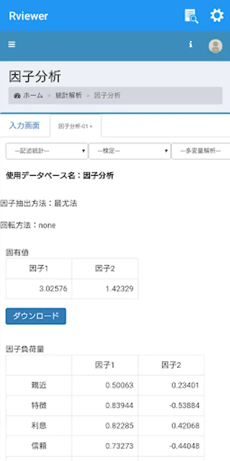 実 装 Implemented a statistical analysis tool "R" that is widely used in the world and has excellent reliability and expandability.