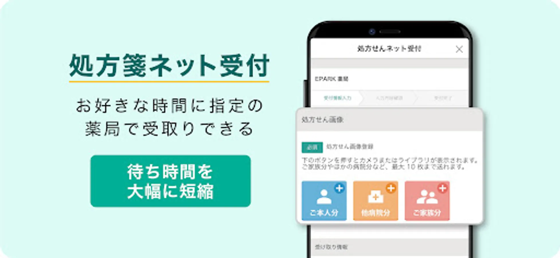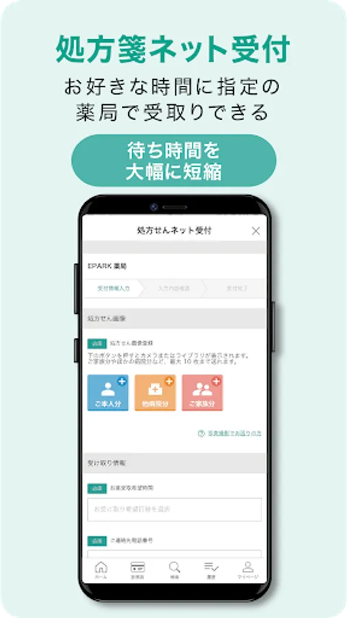 ・You can receive the prescription without waiting by sending the prescription image to your family pharmacy near your home.