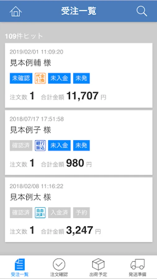 ・ Order management (order list, product list to be shipped, order details, orderer information, confirmation of shipping information, etc.)