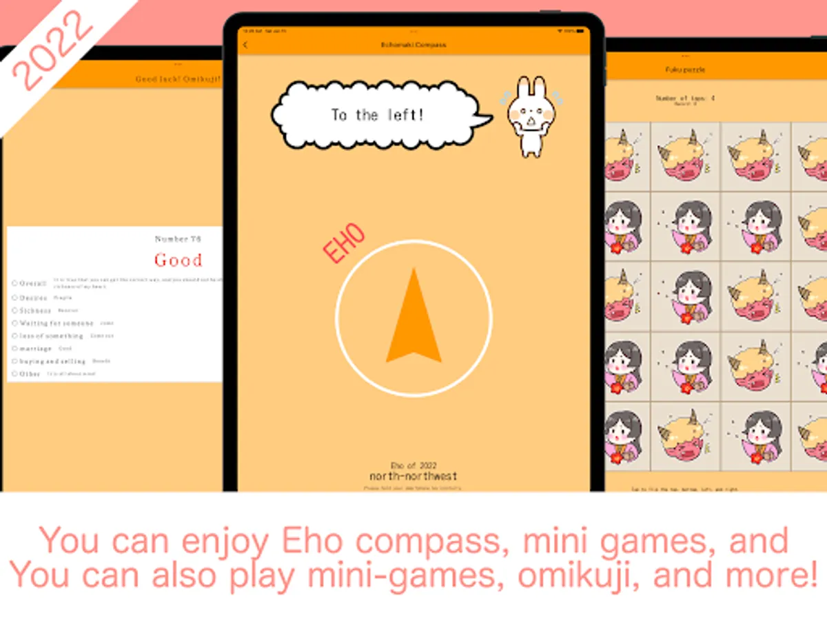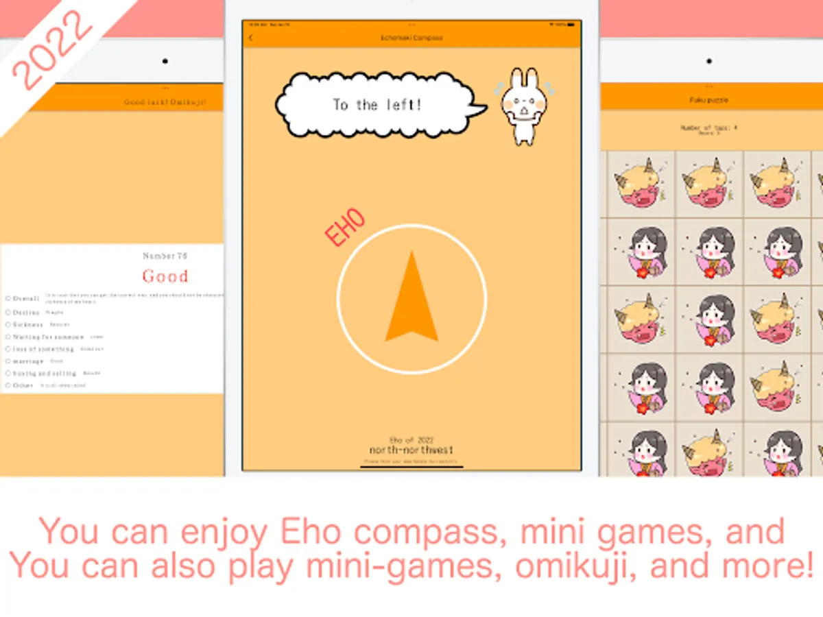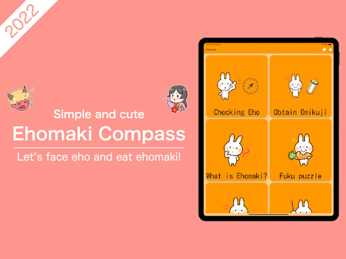 In "Ehomaki Compass & Fortune Slip," not only can you find the exact lucky direction when eating Ehomaki, but you can also enjoy a genuine fortune-telling experience. The user-friendly interface and cute characters will bring joy and good luck to your everyday life.