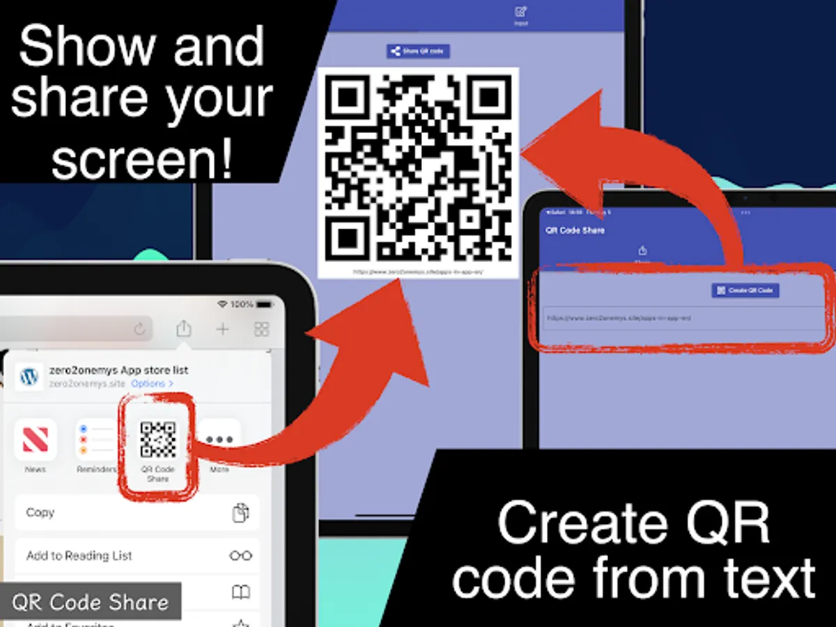 ・Not only URLs, but also memos and other text information can be shared via QR code.