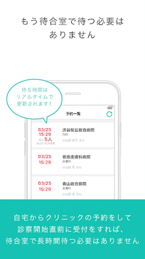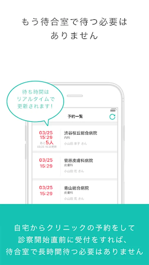 Based on the concept of zero waiting time at hospitals and clinics, this is a hospital/clinic reservation app that displays the waiting time until the examination. No more long waits in the doctor's office.