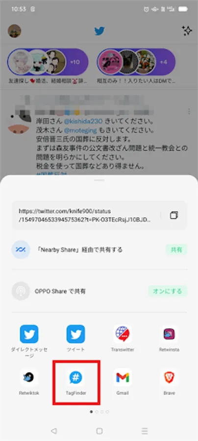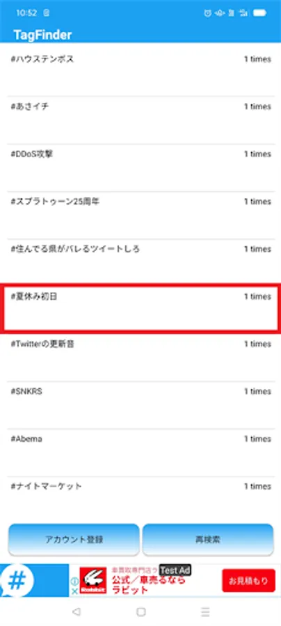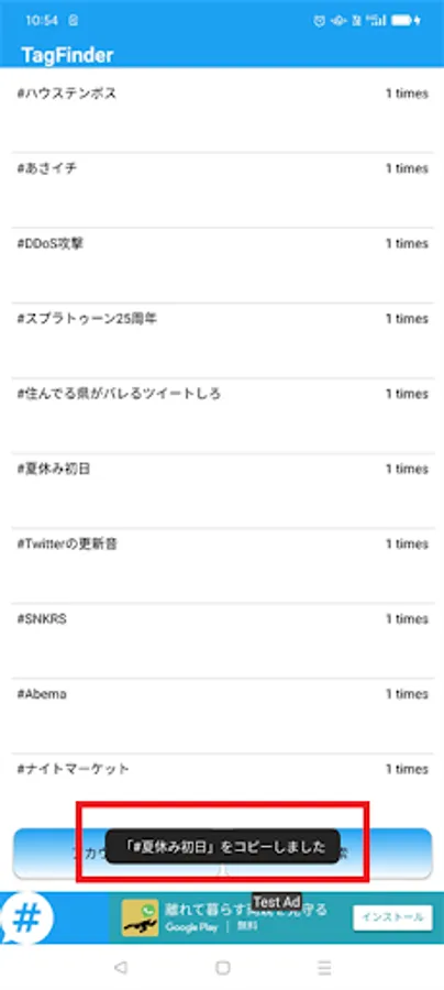 Call this app from the share menu of the official app, it easily list up trend tags and you can copy one of them.