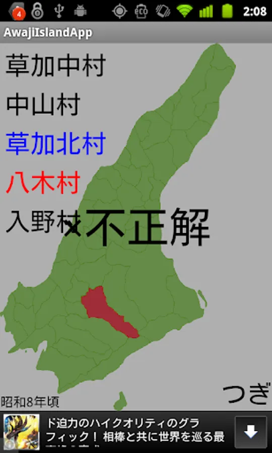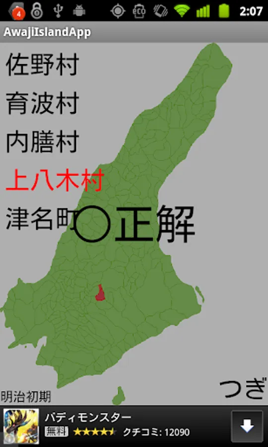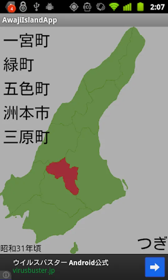 It is an application to choose 5 択 a city name of Awaji Island to date from the early Meiji era.