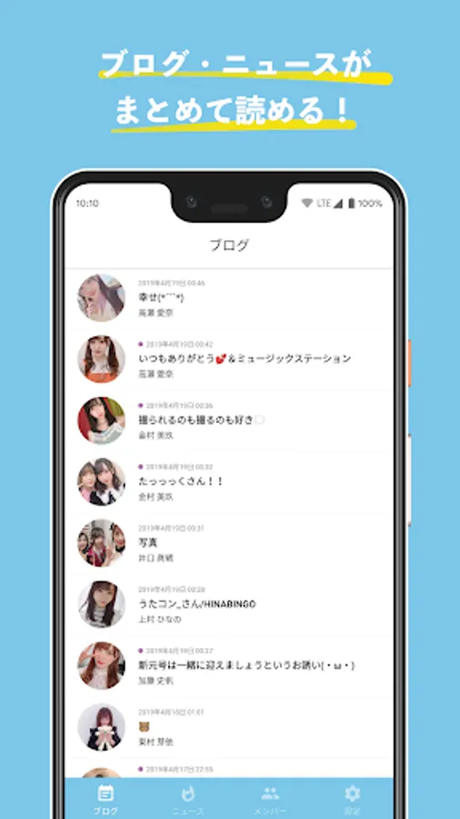 ・ You can set in [Select a member to receive blog notification] after opening [Settings] at the bottom of the screen immediately after launching and turning on [Blog notification].
