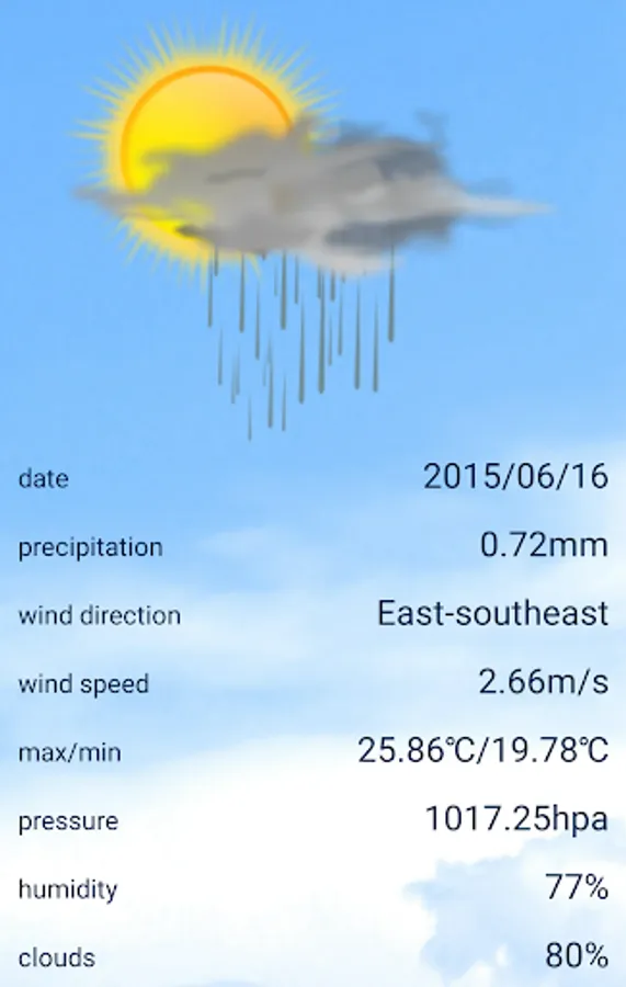 1 week's worth of weather the current position using the GPS, maximum temperature, minimum temperature, precipitation, and then display wind direction, wind speed, barometric pressure, humidity, cloud cover of the forecast.
