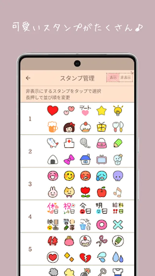 Also, since you can edit the order of the stamp list, frequently used stamps are placed at the front of the list,