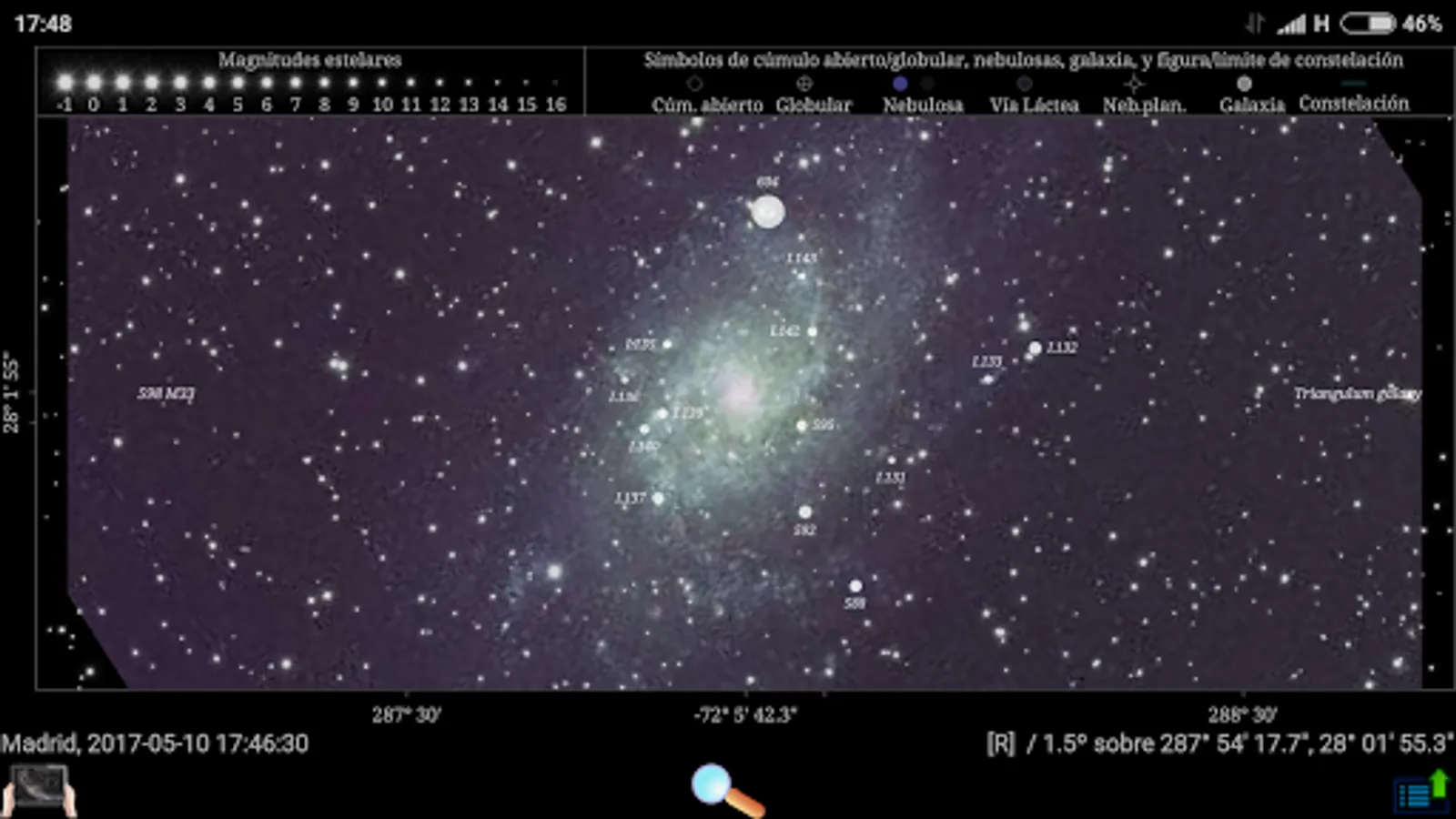 - Magnitude limits enhanced to 16! in both stars and deep sky objects. Network is required to reach magnitude 16 in stars, but only the first time a given field of interest is downloaded. Very limited disk space occuped.