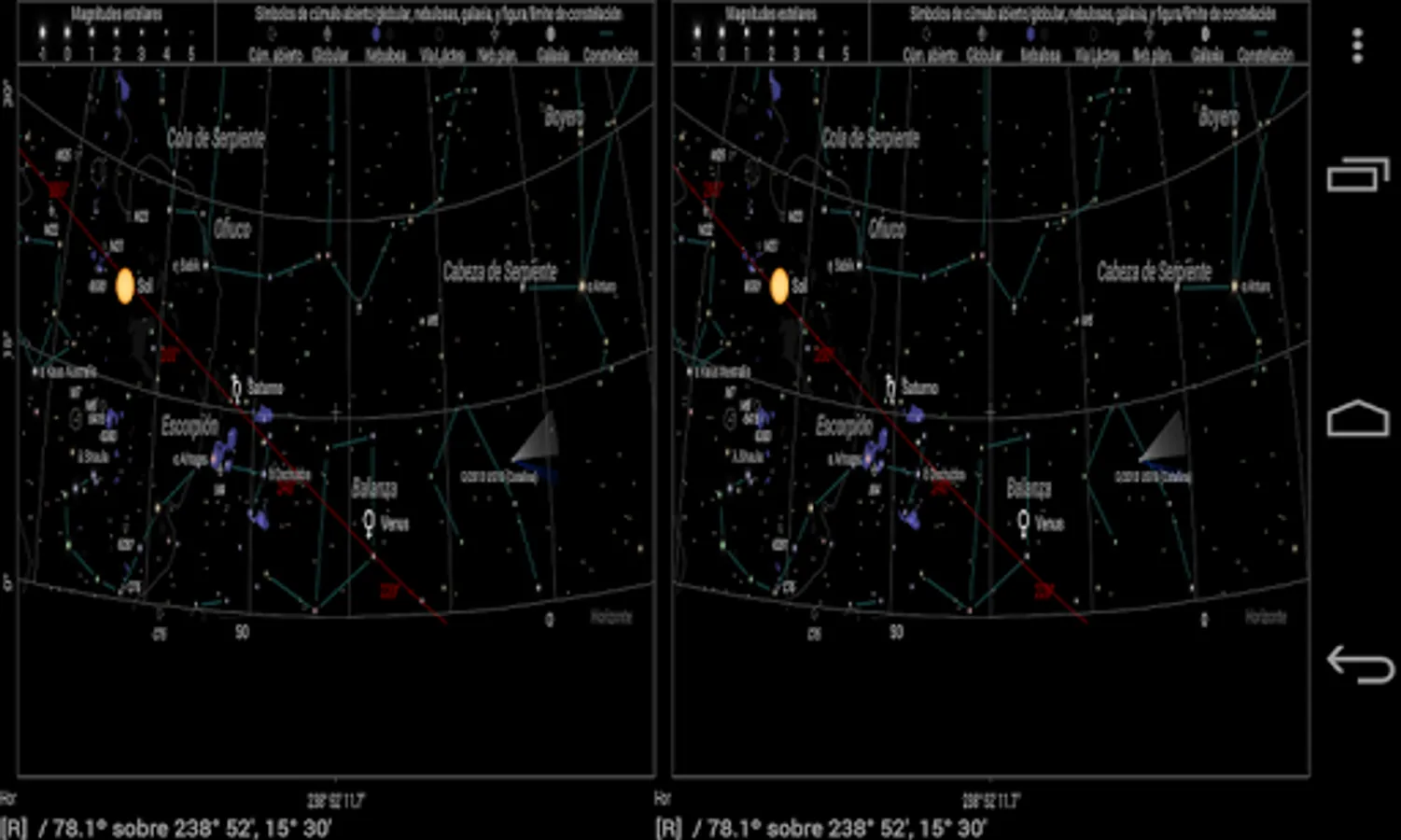 - VR 3d mode (virtual reality) available, showing the live sky in 3d in SBS (side by side) mode for your VR glasses. Stars (and other objects) will appear in 3d depending of their distances!