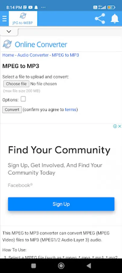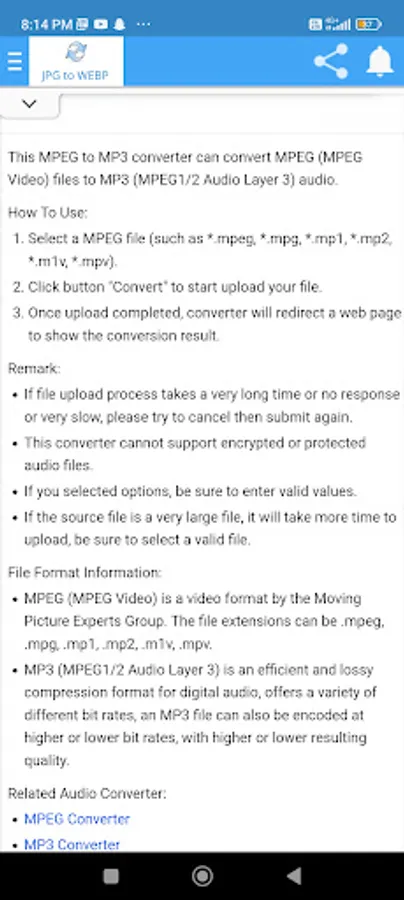 Once upload completed, converter will redirect a web page to show the conversion result.