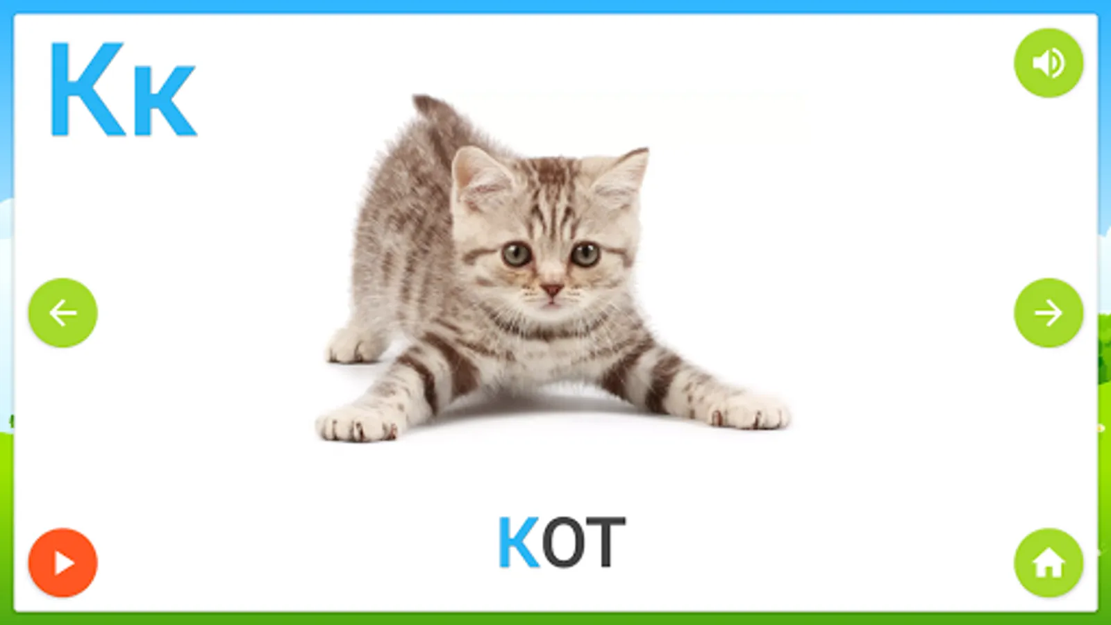 🌳 You can choose what you would like to hear after starting letter card (letter/sound/word), after starting the slideshow and after click on the speak button on the card. You can also choose what you like to do by clicking on the card.