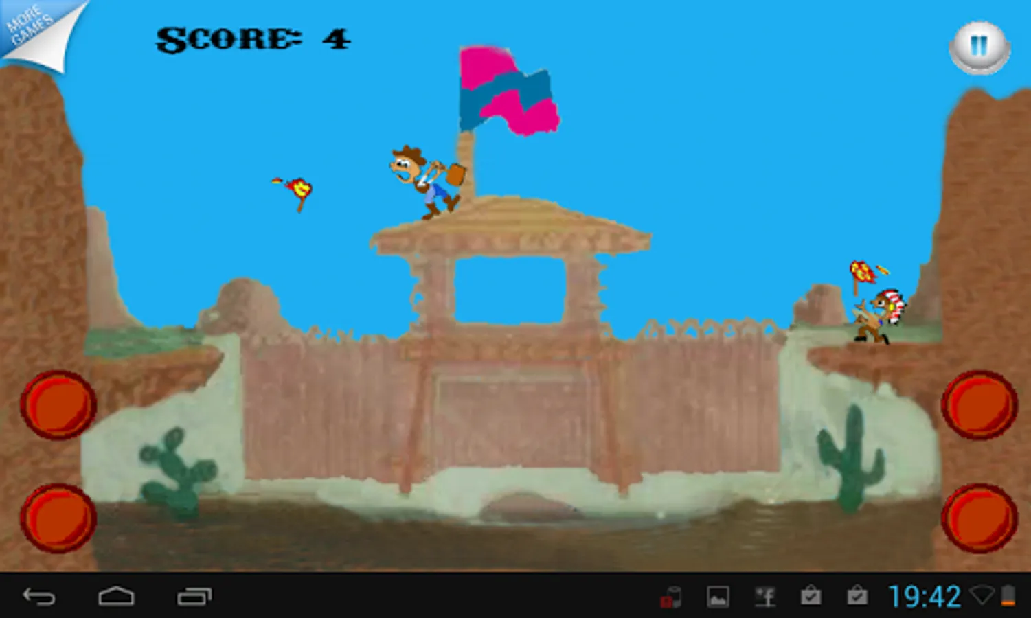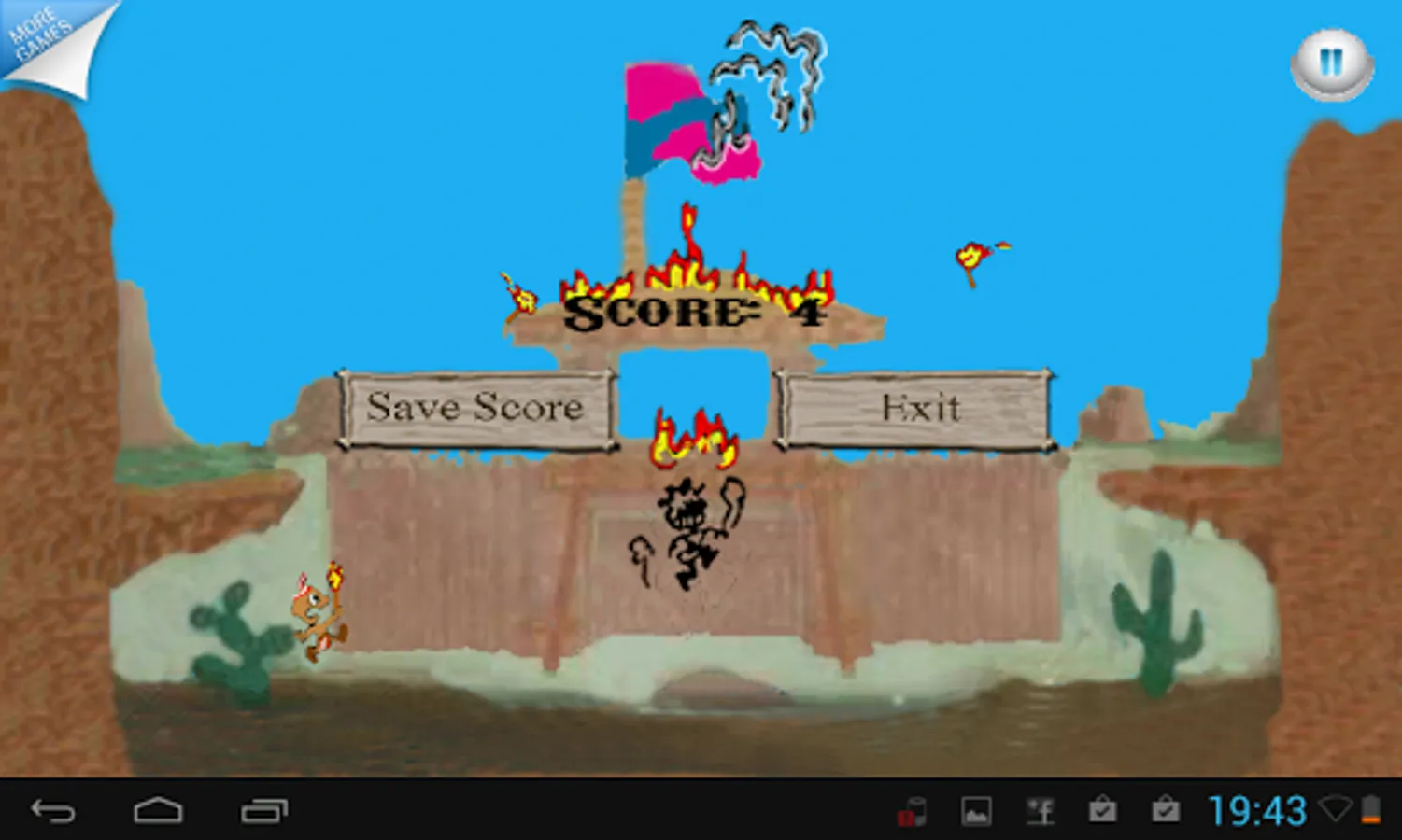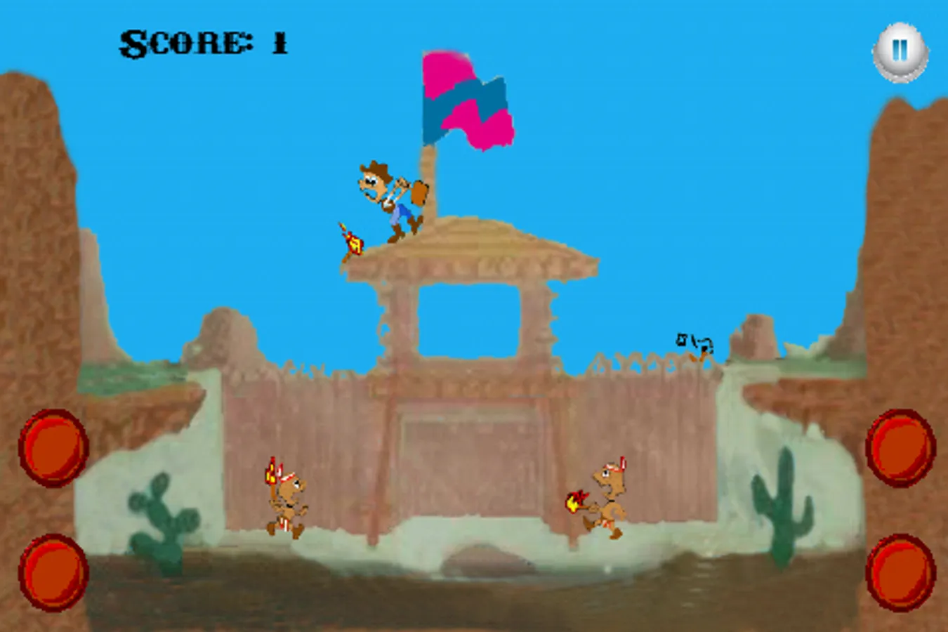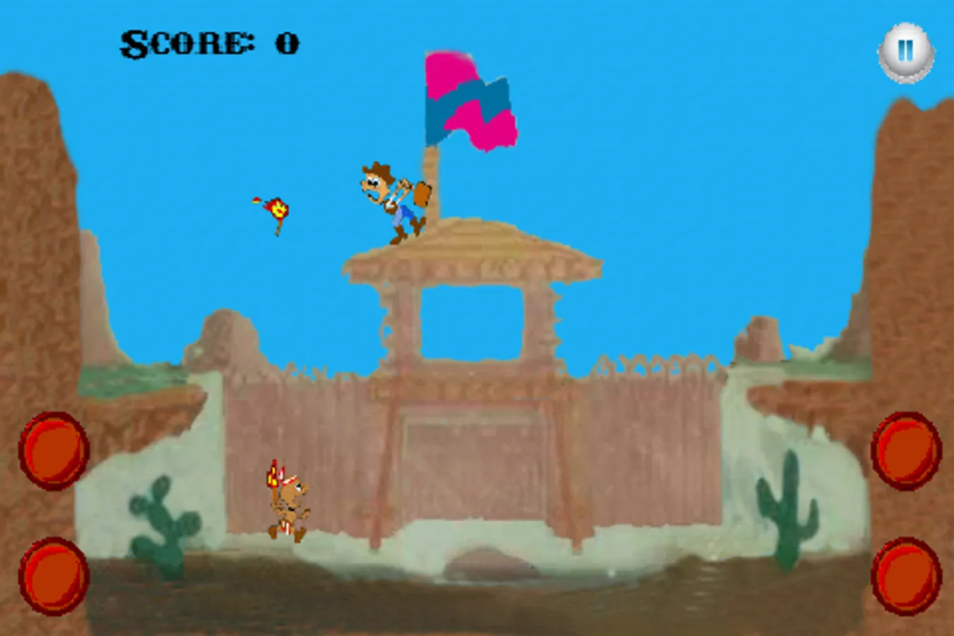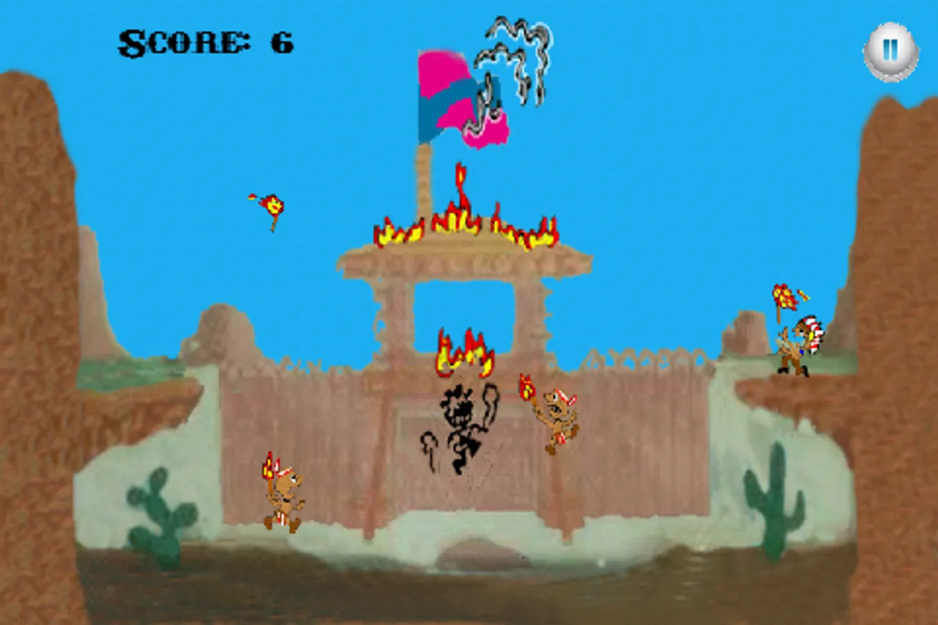 Remake video game Fire Attack 1982. Color improved. Defend the fort from attack by arsonists native Indians who want to burn.