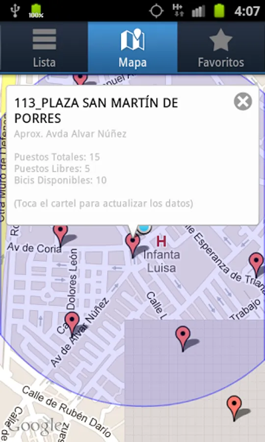 Real-time information Sevici stations (public bicycle network Sevilla) and the state of the same. Get the information of the positions of each station, bikes available and free slots instantly. Find out which stations have closer and what is the status of each one and add it to favorites if you consult often. Save time by going to the exact site!