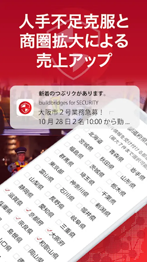 This app is a business matching service that allows you to search for subcontractors and business partners for security companies that are suffering from a shortage of security guards on site or are looking to expand their business area to increase sales, within a fixed monthly fee. is. You can use the "Tsubu-Riku®" function to search for suppliers that match your company's requirements, such as the date, time, location, number of people, etc., from among multiple companies. During the month, no matter how many times you match, the flat rate will remain. In addition, there are no closing fees or expenses for each matching. * "Tsubu-Riku®" is a registered trademark of CiPPo Co., Ltd.