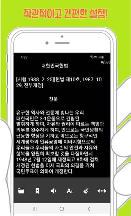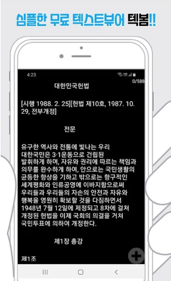 -You can select and use a txt file in the explorer, and open other files in order with the lower right + menu button / bookmark (save, load) / read by voice / font settings (size, character space, longpyeong) / day/night mode / Line movement