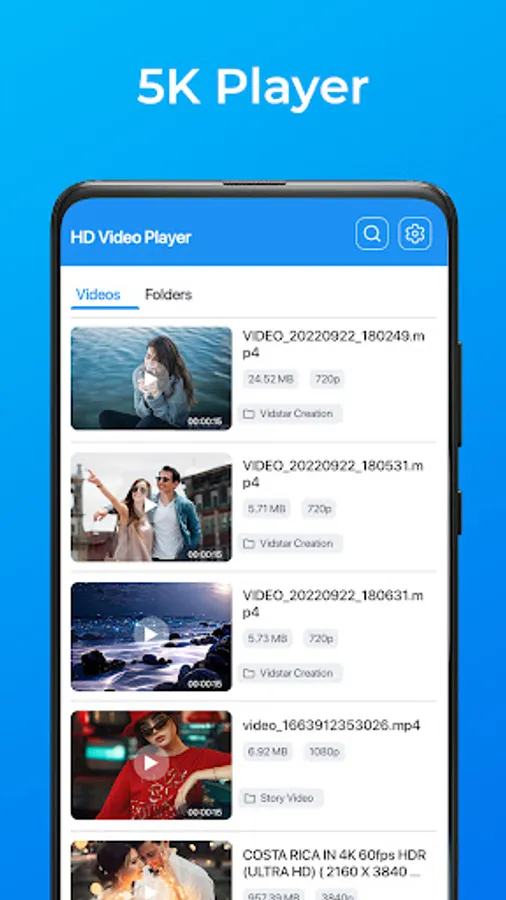 Vide video player all format is a 5K video player for android, simple and powerful. Any video formats are supported. All-in-one media player for different formats.