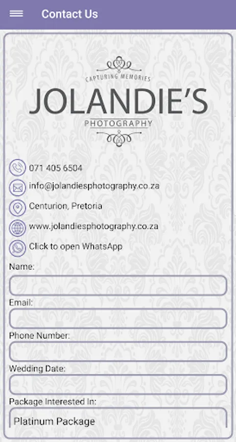 My name is Jolandie, and I am the owner of Jolandie’s Photography. Photography started off as a hobby but soon became a passion of mine. I enjoy taking photos in the outdoors using natural light for weddings, maternity and family shoots. My aim is to make memories last a lifetime by capturing the special moments and making you feel comfortable while doing it. I am privileged to have a great photographer on my team, Rowlene. Rowlene specialises in lifestyle and wildlife photography and is inspired by nature. She has a good eye for both design and photography and loves to utilise her design skills while creating stunning images for our clients. Feel free to contact us and discuss your photography needs.